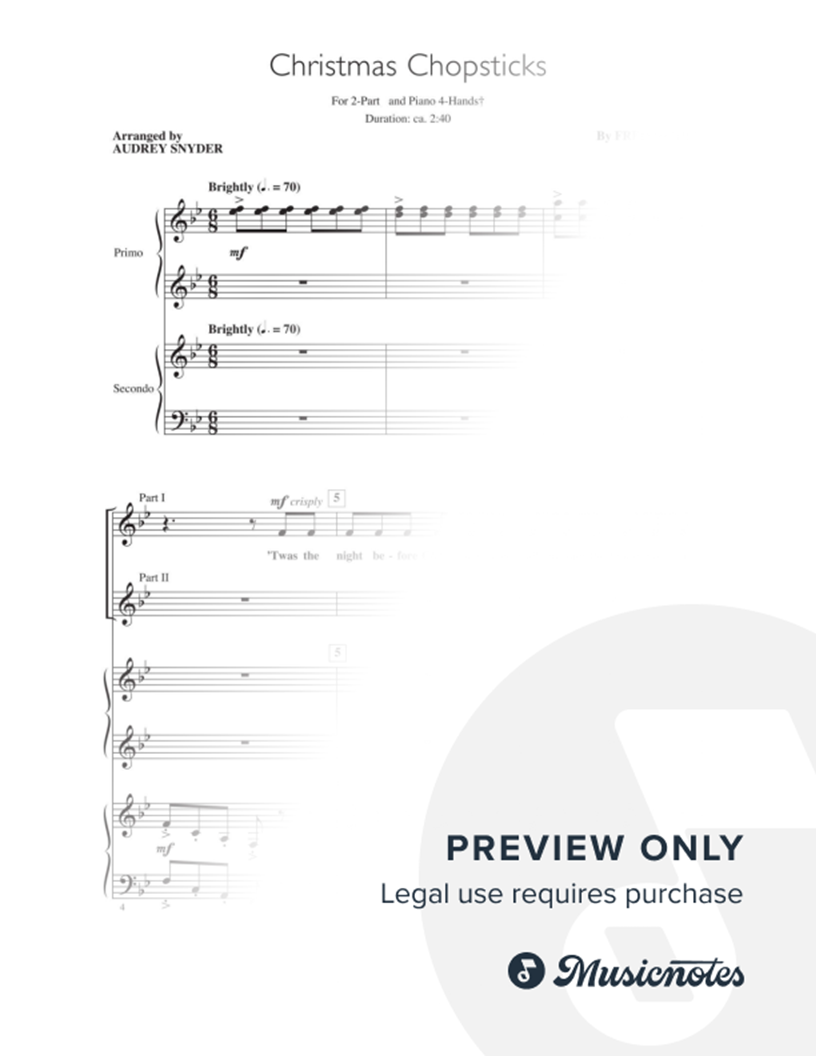 Many of the arrangements on Musicnotes have transpositions available, typically in C Major, as well as 3 sharps and 3 flats. If you do not see your desired key, you can request a transposition by reaching out to Customer Support.