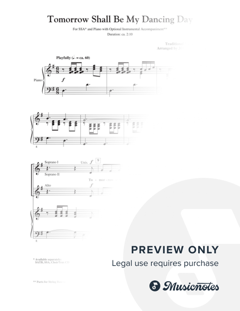 SSA Choir Piano Accompaniment Double Bass Percussion 1 Percussion 2 | |