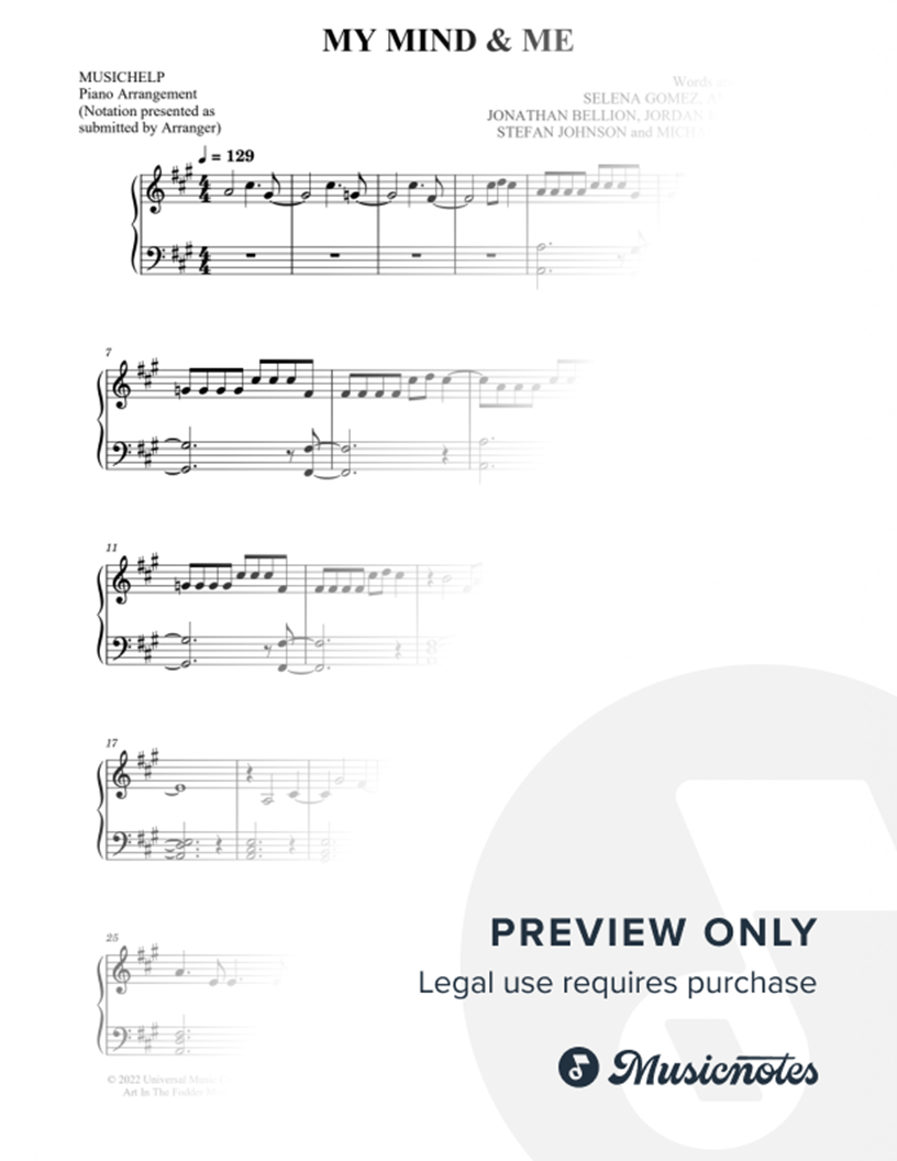 Many of the arrangements on Musicnotes have transpositions available, typically in C Major, as well as 3 sharps and 3 flats. If you do not see your desired key, you can request a transposition by reaching out to Customer Support.
