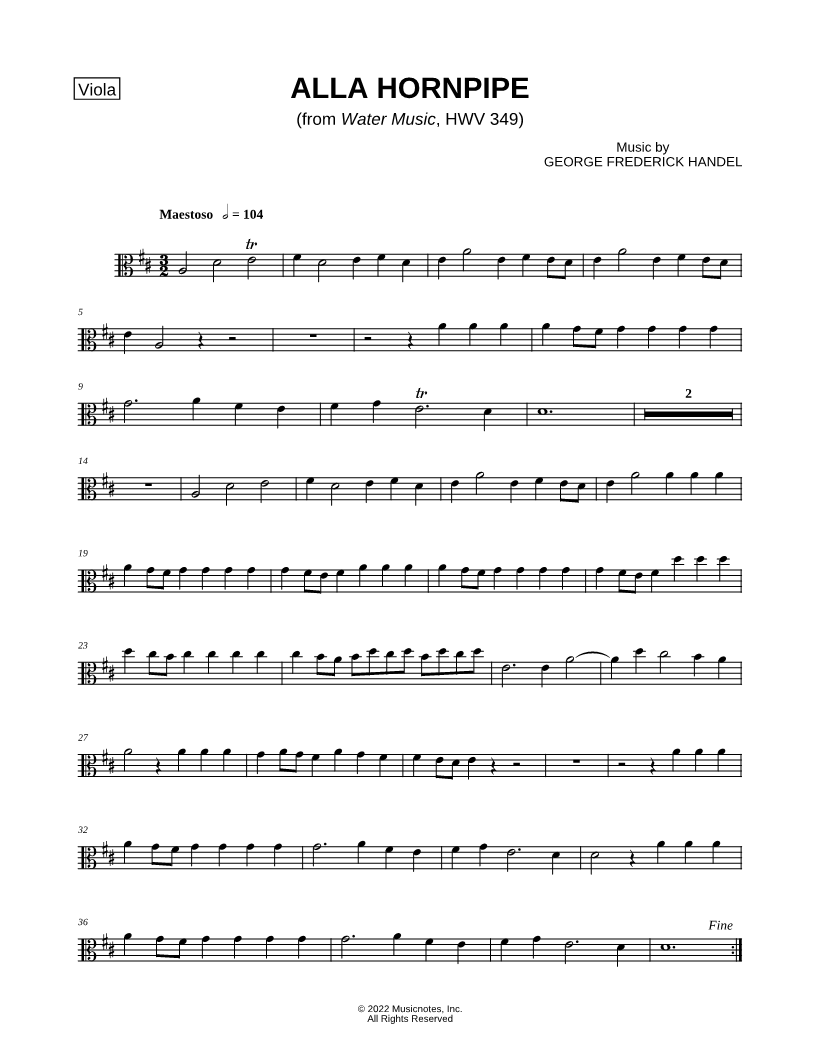 Alla Hornpipe from Water Music - Viola |