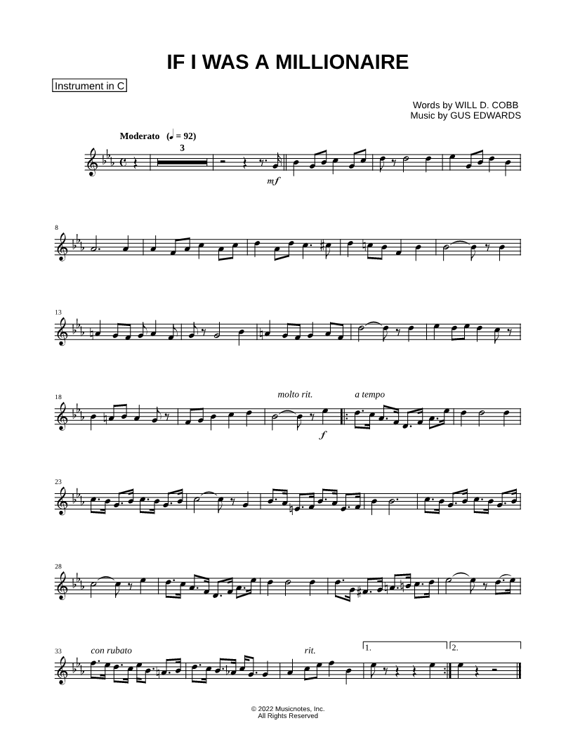 If I Was a Millionaire - C Instrument |
