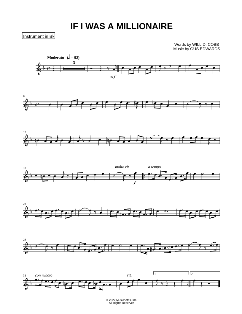 If I Was a Millionaire - Bb Instrument |