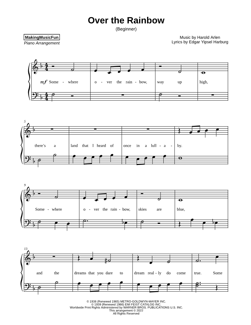 Somewhere over the rainbow, way up high, there's a land that I heard of once in a lullaby. |