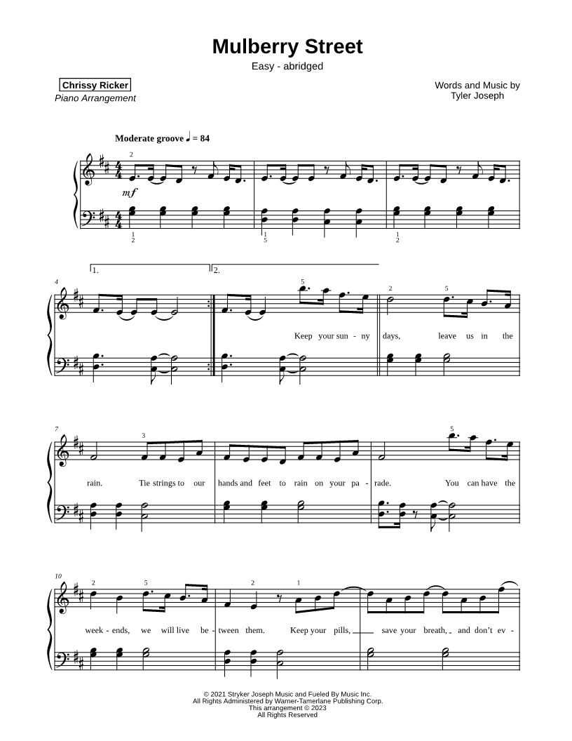 Musicnotes sells a wide variety of digital sheet music products including Singer Pros, Beginner Notes, Choral music, Piano Solos, Lead Sheets, Piano/Vocal/Guitar, Solo and Accompaniment, and fretted instrument tablature.
