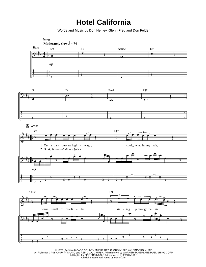 Bass Tab Bass/Vocal/Chords |