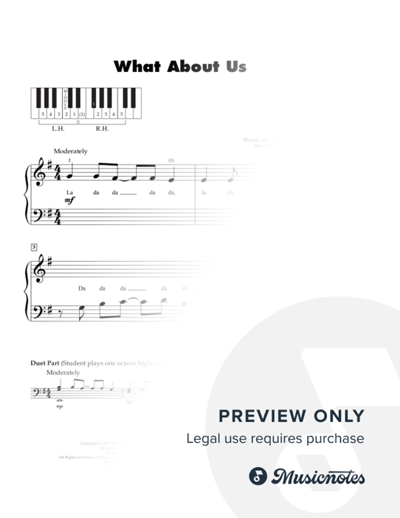 Musicnotes sells a wide variety of digital sheet music products including Singer Pros, Beginner Notes, Choral music, Piano Solos, Lead Sheets, Piano/Vocal/Guitar, Solo and Accompaniment, and fretted instrument tablature.