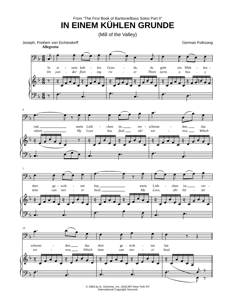 In einem kuhlen Grunde, da geht ein Muhlenrad, mein Liebchen ist verschwunden, |