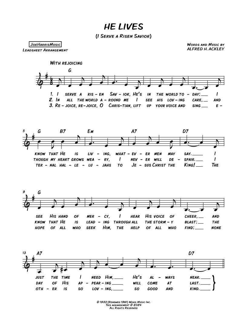 I serve a risen Savior, He's in the world today; I know that He is living, whatever men may say. |