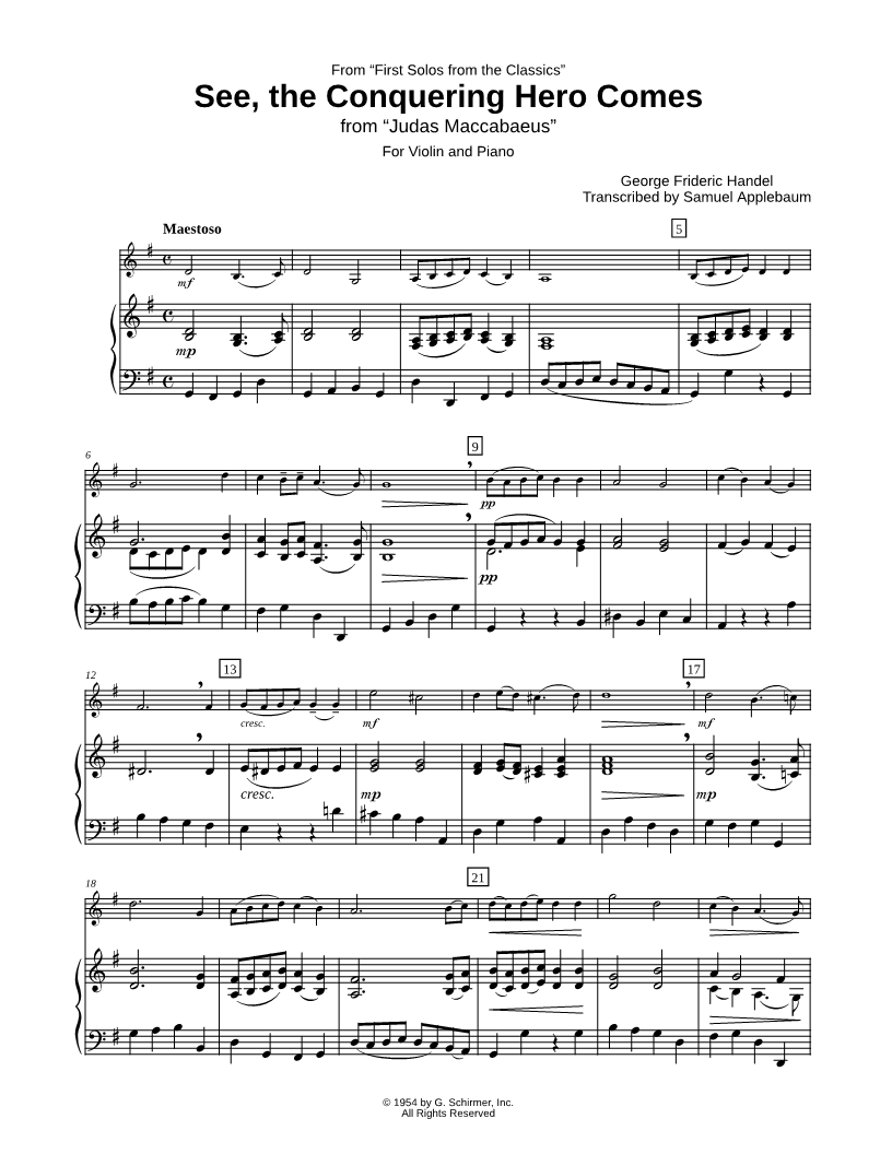 See, the Conquering Hero Comes - Violin & Piano |