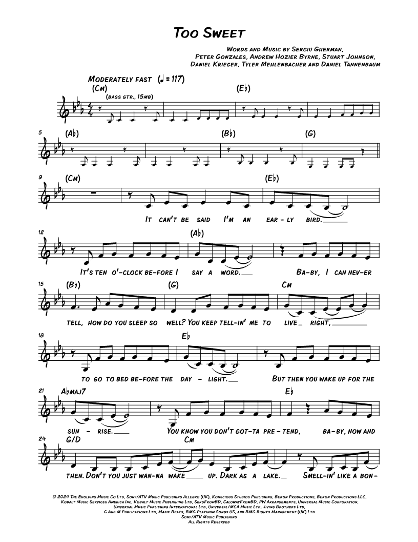 Musicnotes sells a wide variety of digital sheet music products including Singer Pros, Beginner Notes, Choral music, Piano Solos, Lead Sheets, Piano/Vocal/Guitar, Solo and Accompaniment, and fretted instrument tablature.