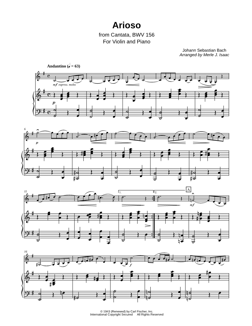 Arioso from Cantata BWV 156 - Violin & Piano |