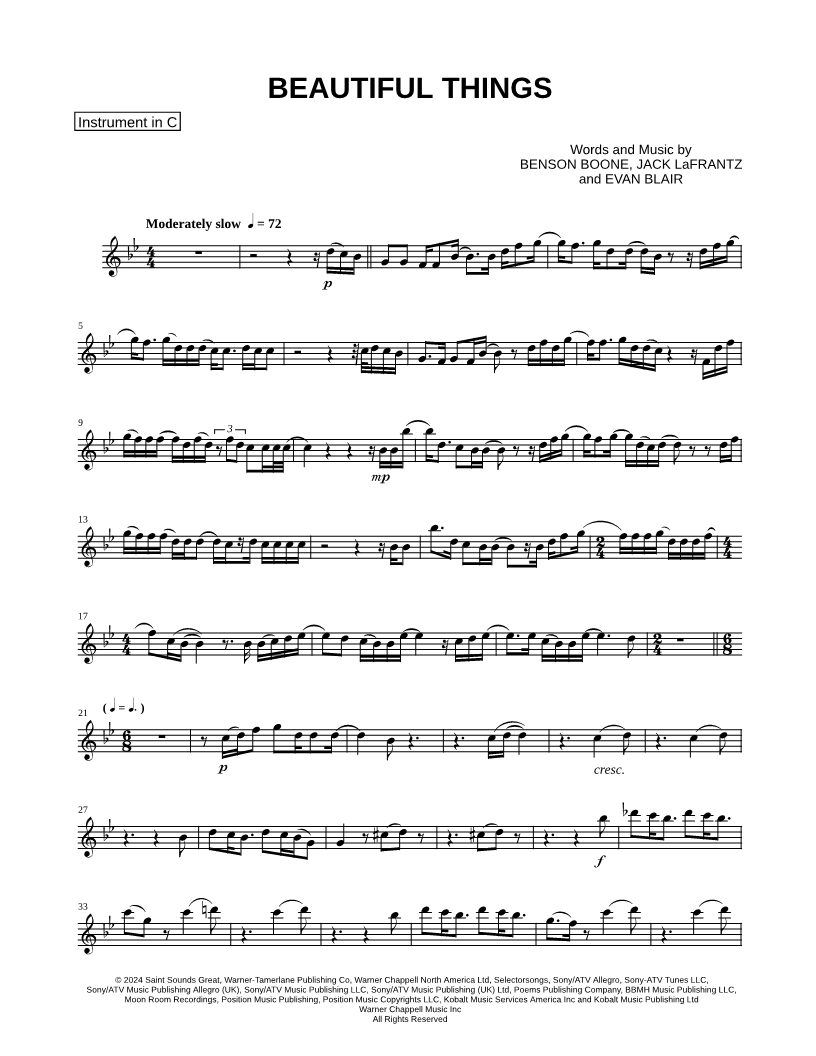 Beautiful Things - C Instrument |