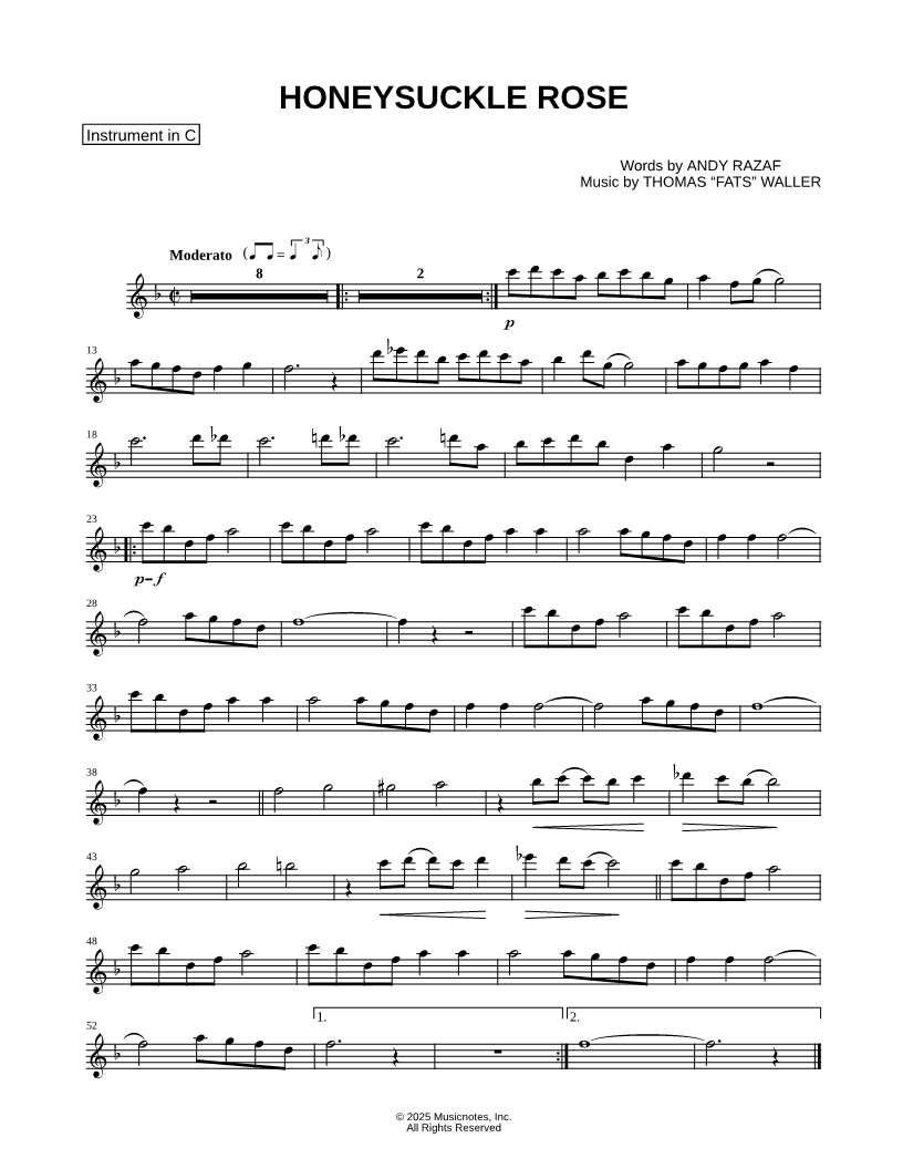 Honeysuckle Rose - C Instrument |