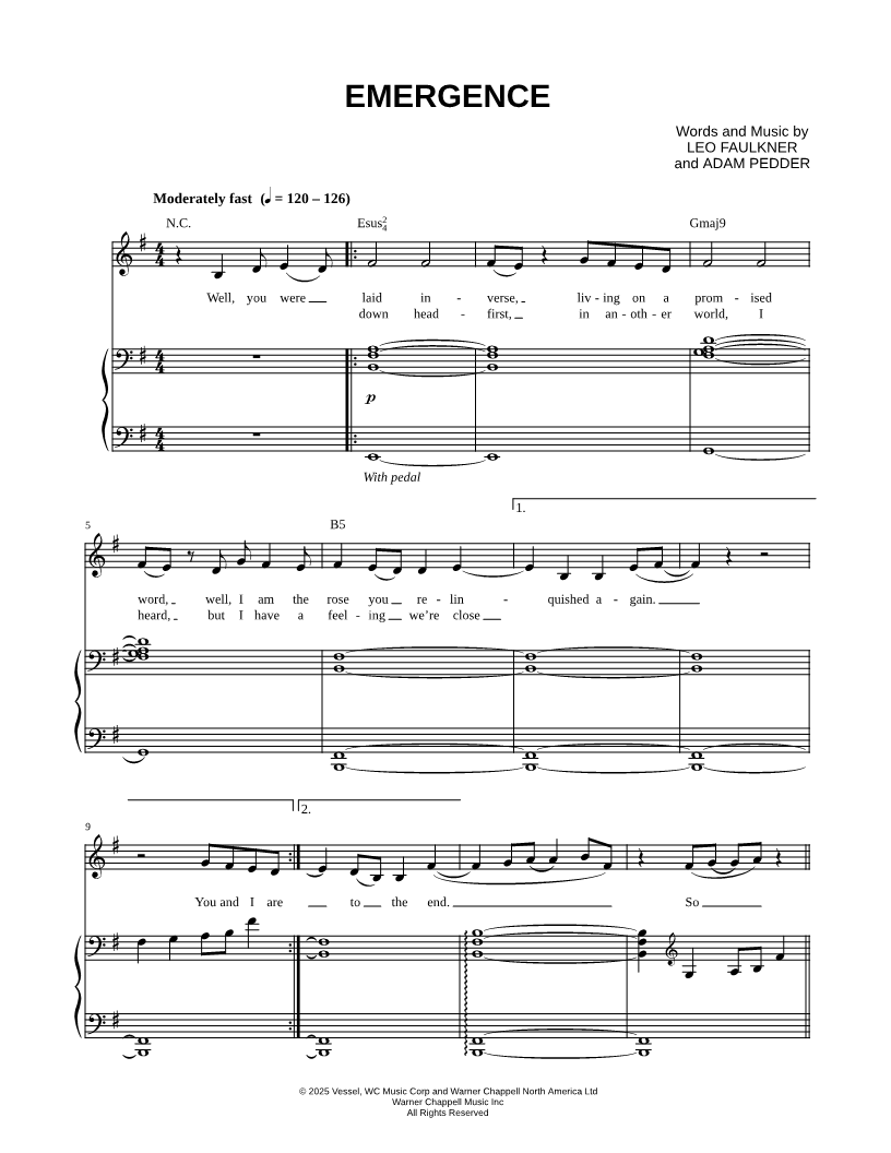 Voice, range: B3-F#5 Piano Backup Vocals | |