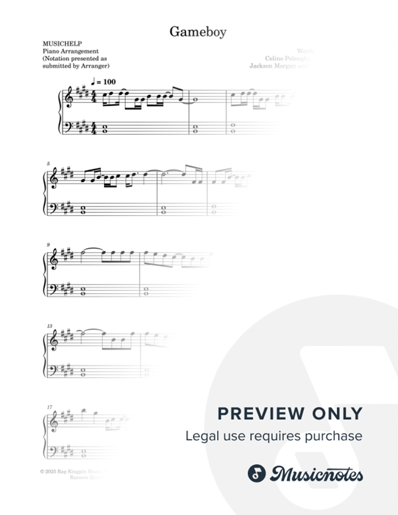 Many of the arrangements on Musicnotes have transpositions available, typically in C Major, as well as 3 sharps and 3 flats. If you do not see your desired key, you can request a transposition by reaching out to Customer Support.
