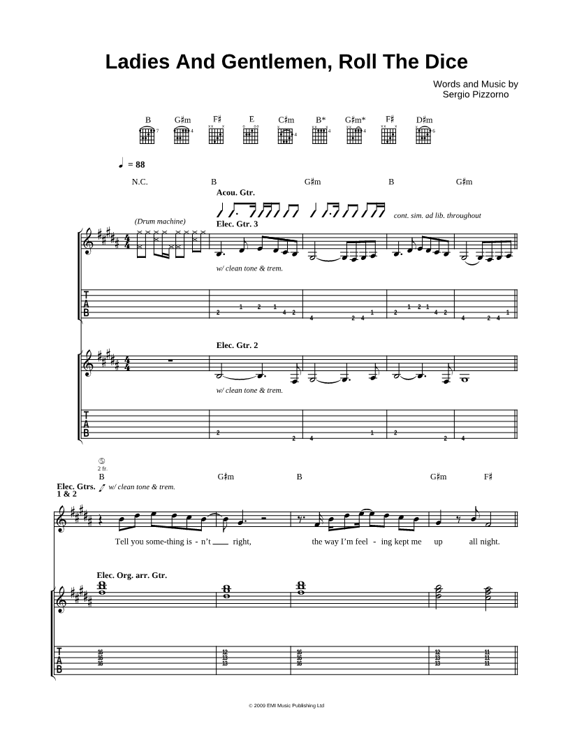 Voice, range: E4-G#5 Guitar 1 or Electric Guitar Guitar 2 or Electric Guitar Guitar 3 or Electric Guitar Acoustic Guitar | |