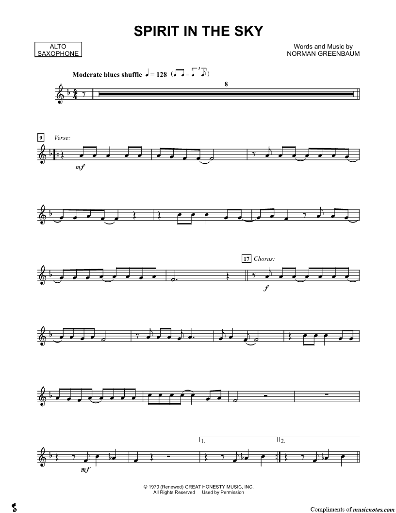 Spirit in the Sky - Alto Saxophone |