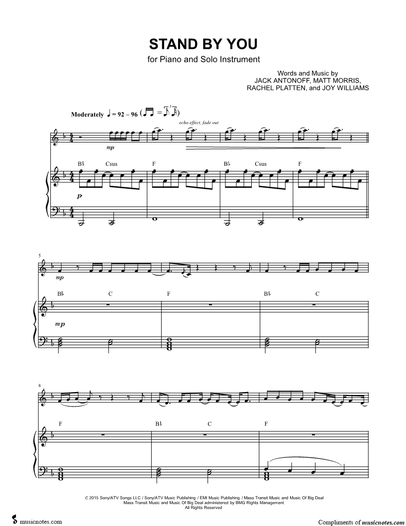 Stand by You - Bb Instrument & Piano