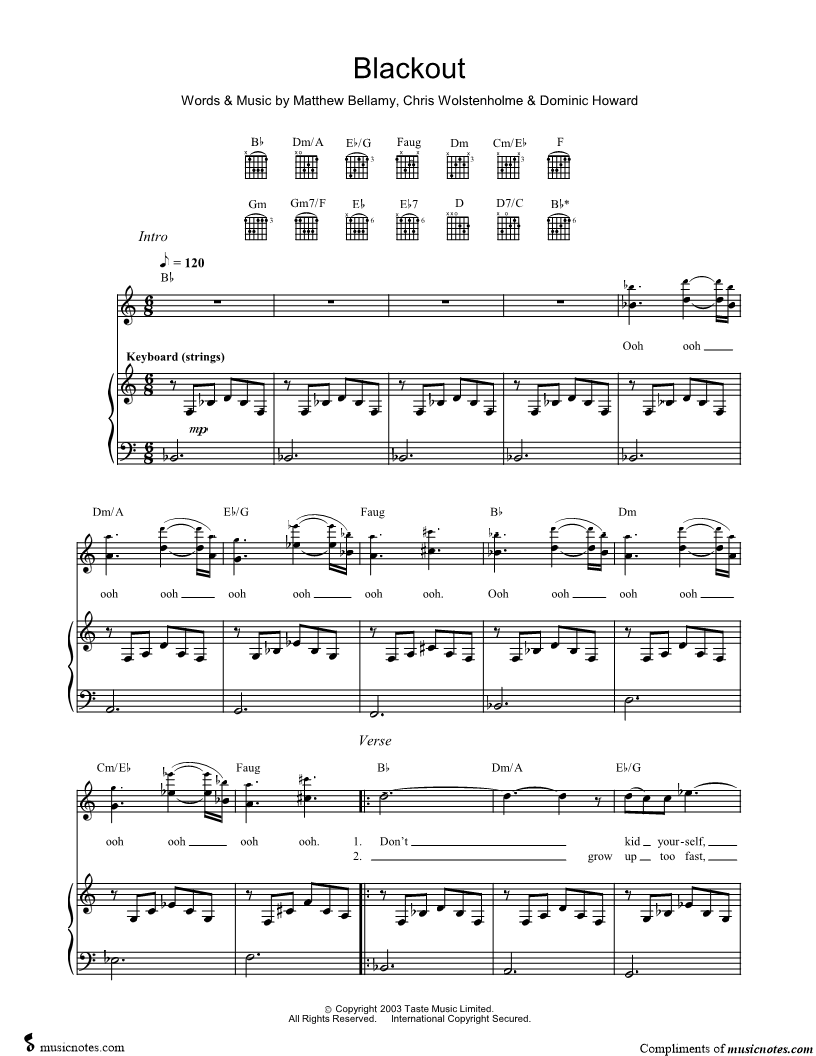 Voice, range: F#4-F5 Keyboard, range: F2-D6 Guitar | |