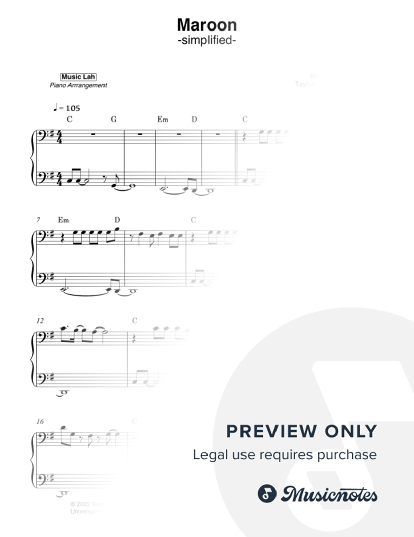 Many of the arrangements on Musicnotes have transpositions available, typically in C Major, as well as 3 sharps and 3 flats. If you do not see your desired key, you can request a transposition by reaching out to Customer Support.