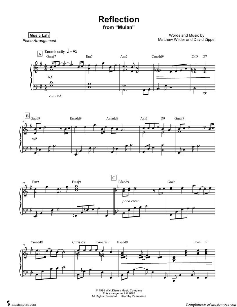 Many of the arrangements on Musicnotes have transpositions available, typically in C Major, as well as 3 sharps and 3 flats. If you do not see your desired key, you can request a transposition by reaching out to Customer Support.