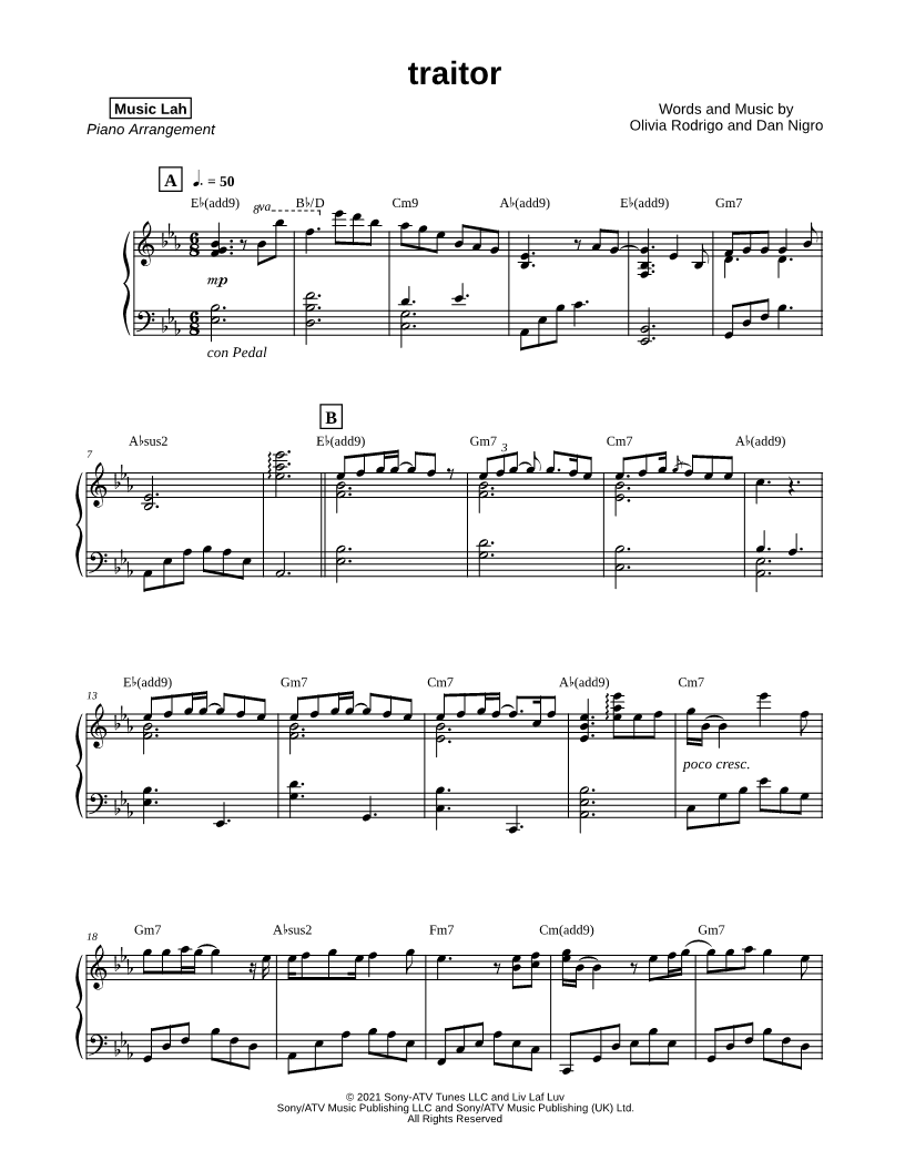 Many of the arrangements on Musicnotes have transpositions available, typically in C Major, as well as 3 sharps and 3 flats. If you do not see your desired key, you can request a transposition by reaching out to Customer Support.