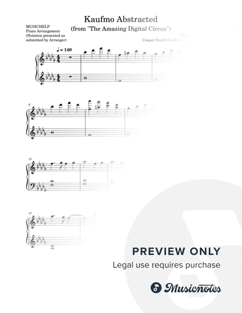 Many of the arrangements on Musicnotes have transpositions available, typically in C Major, as well as 3 sharps and 3 flats. If you do not see your desired key, you can request a transposition by reaching out to Customer Support.