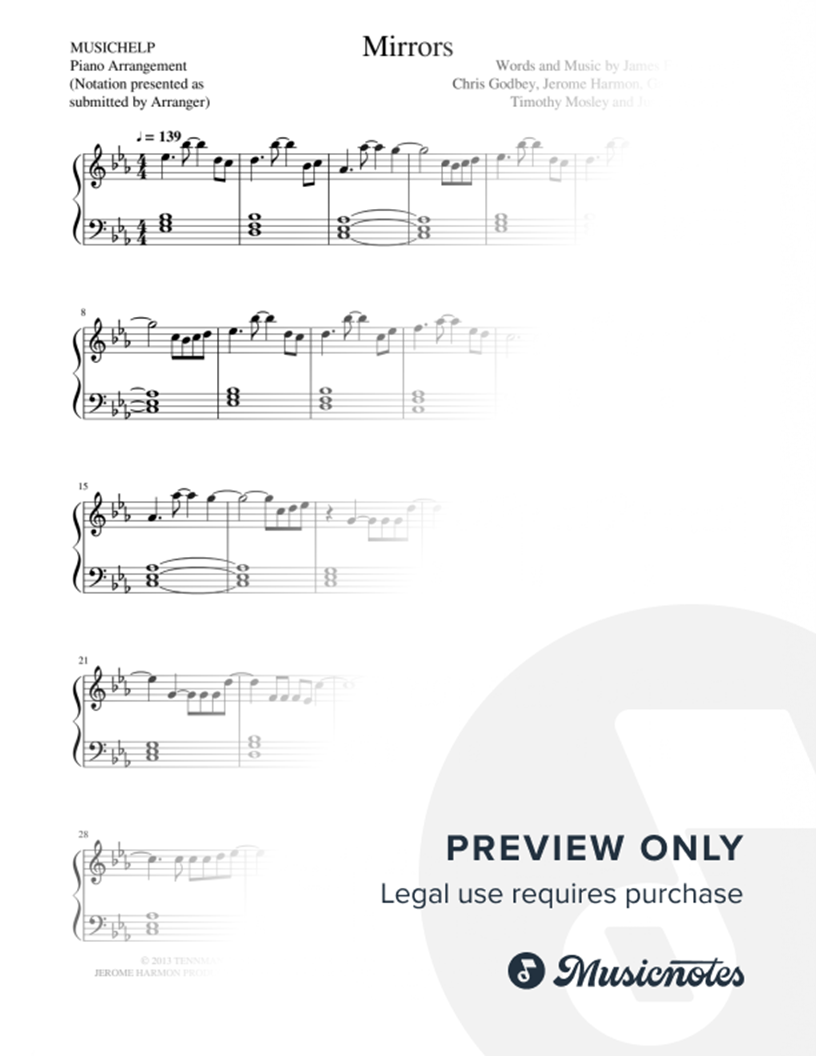 Many of the arrangements on Musicnotes have transpositions available, typically in C Major, as well as 3 sharps and 3 flats. If you do not see your desired key, you can request a transposition by reaching out to Customer Support.
