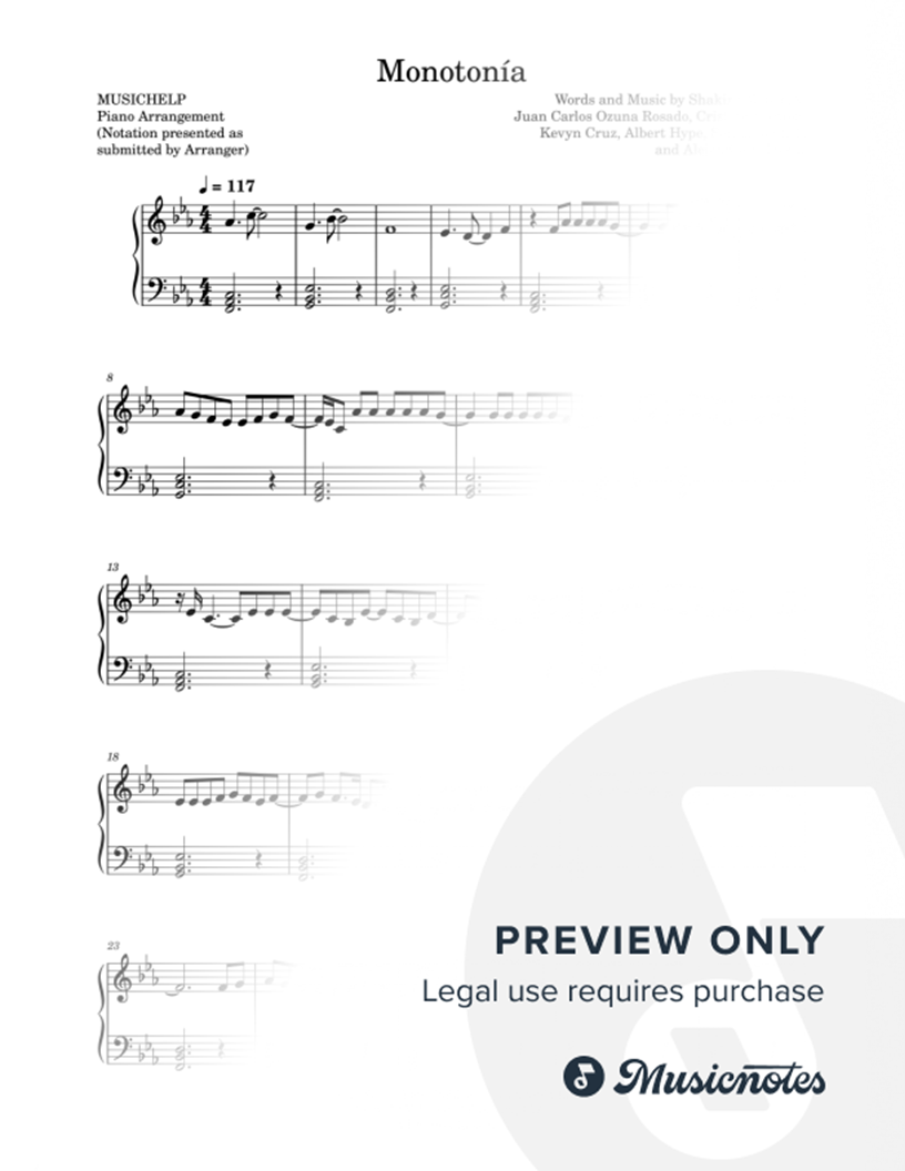 Musicnotes sells a wide variety of digital sheet music products including Singer Pros, Beginner Notes, Choral music, Piano Solos, Lead Sheets, Piano/Vocal/Guitar, Solo and Accompaniment, and fretted instrument tablature.