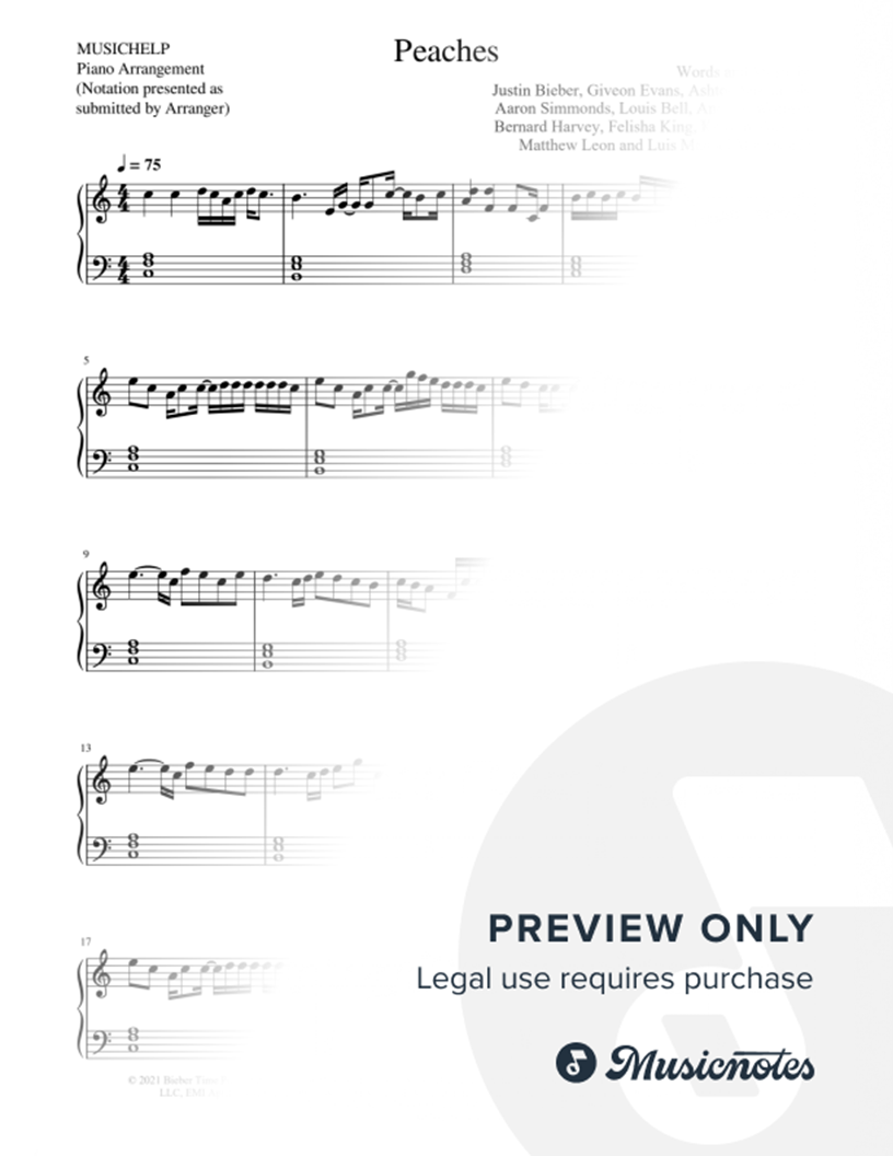 Many of the arrangements on Musicnotes have transpositions available, typically in C Major, as well as 3 sharps and 3 flats. If you do not see your desired key, you can request a transposition by reaching out to Customer Support.