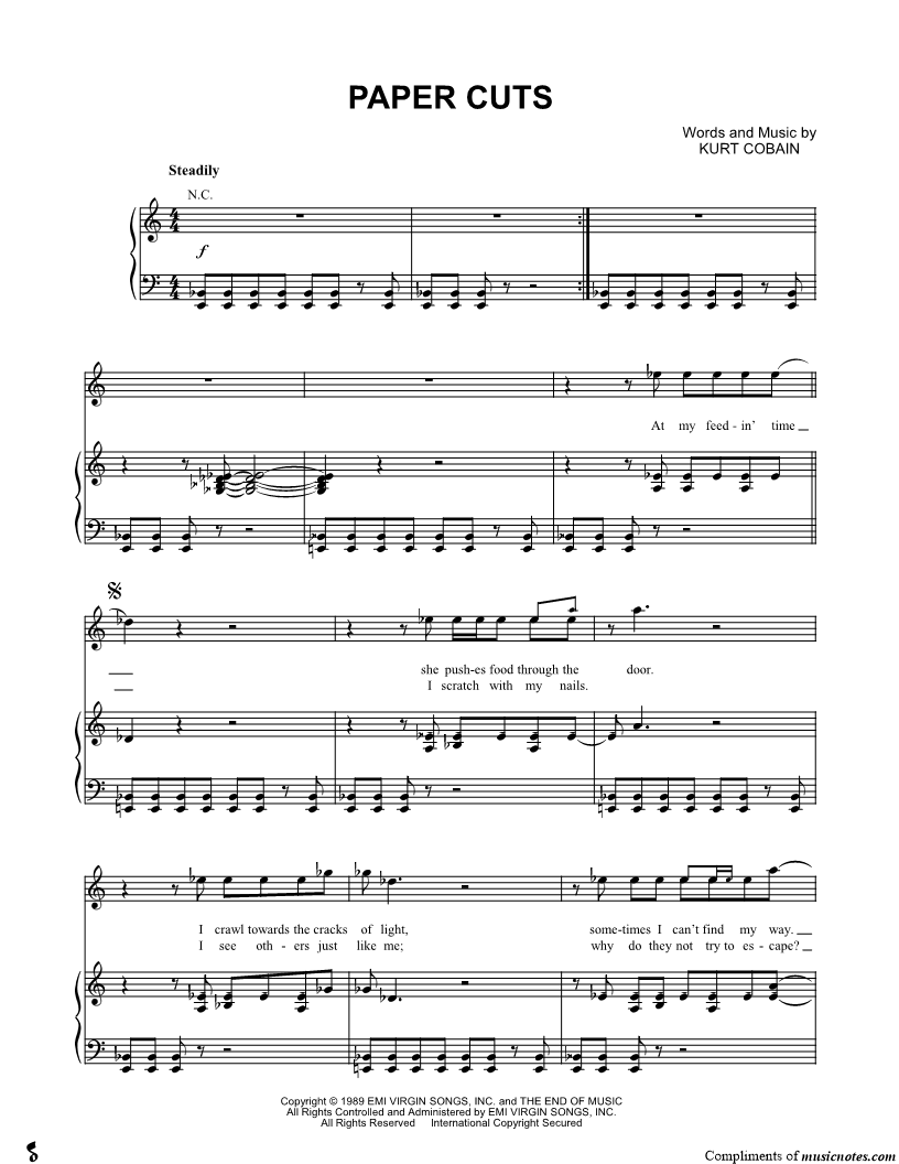 Musicnotes sells a wide variety of digital sheet music products including Singer Pros, Beginner Notes, Choral music, Piano Solos, Lead Sheets, Piano/Vocal/Guitar, Solo and Accompaniment, and fretted instrument tablature.