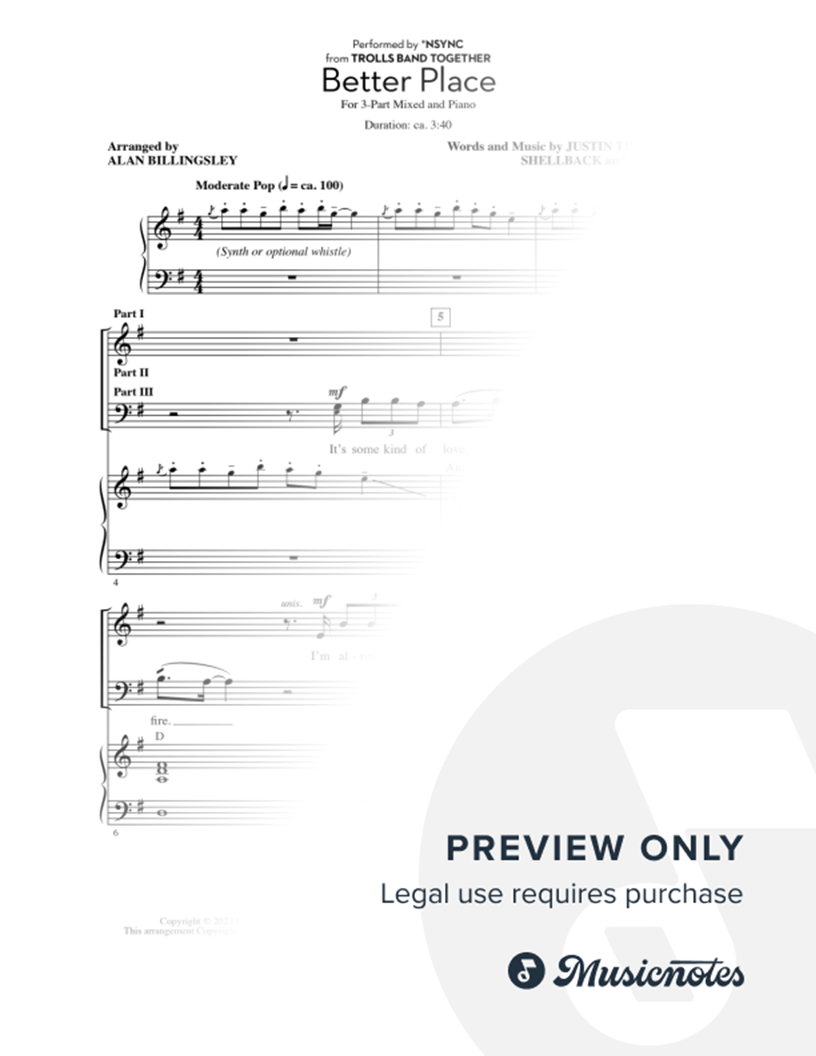 Many of the arrangements on Musicnotes have transpositions available, typically in C Major, as well as 3 sharps and 3 flats. If you do not see your desired key, you can request a transposition by reaching out to Customer Support.