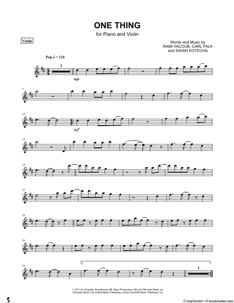 One Thing - Violin part |