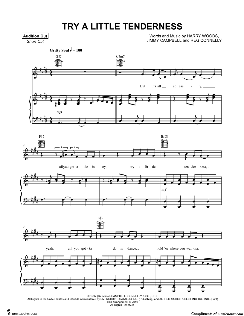 But it's all so easy, all you gotta do is try, try a little tenderness, |