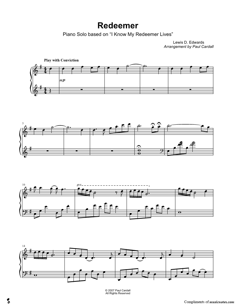 "Paul Cardells arrangement of Redeemer is absolutely beautiful and soul-stirring. This arra..." Read reviews