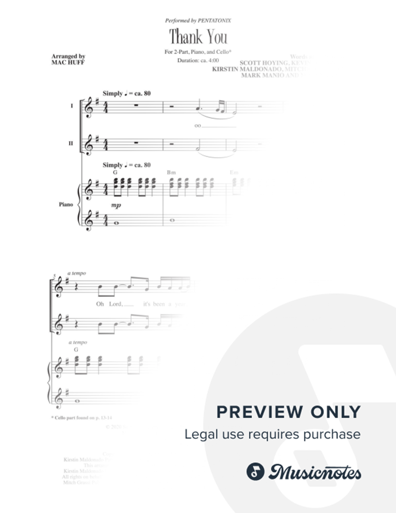 Many of the arrangements on Musicnotes have transpositions available, typically in C Major, as well as 3 sharps and 3 flats. If you do not see your desired key, you can request a transposition by reaching out to Customer Support.