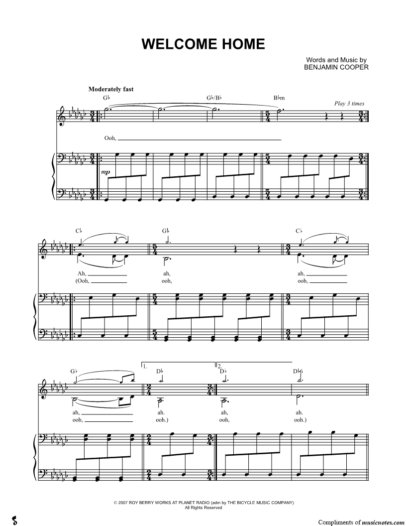 Voice, range: Ab3-Db6 Piano Backup Vocals | |