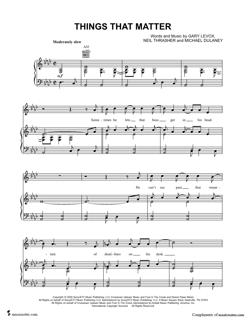 Musicnotes sells a wide variety of digital sheet music products including Singer Pros, Beginner Notes, Choral music, Piano Solos, Lead Sheets, Piano/Vocal/Guitar, Solo and Accompaniment, and fretted instrument tablature.