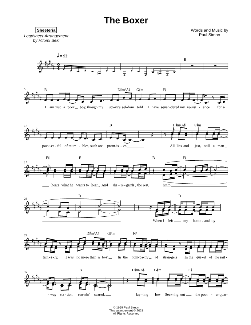 Lyrics/Melody/Chords Leadsheet |