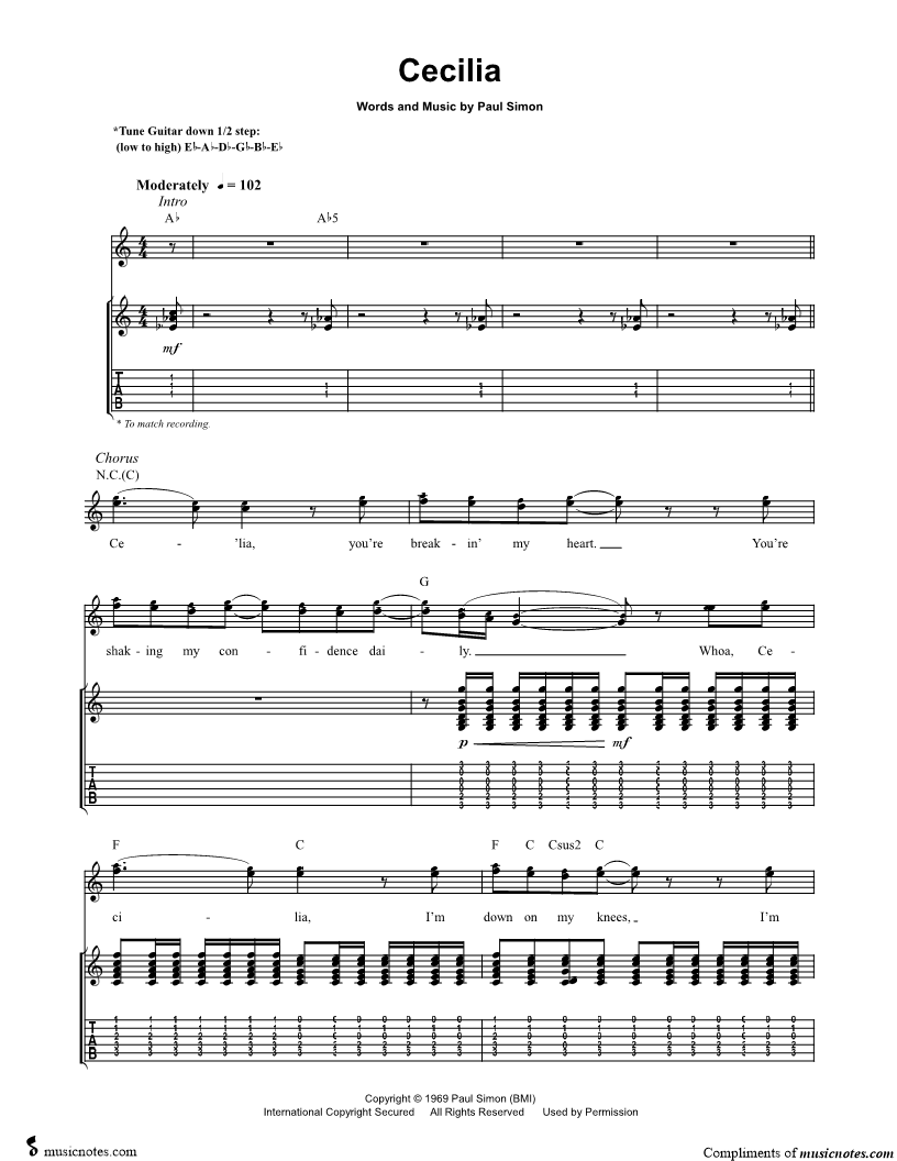 Guitar Tab Guitar/Vocal |