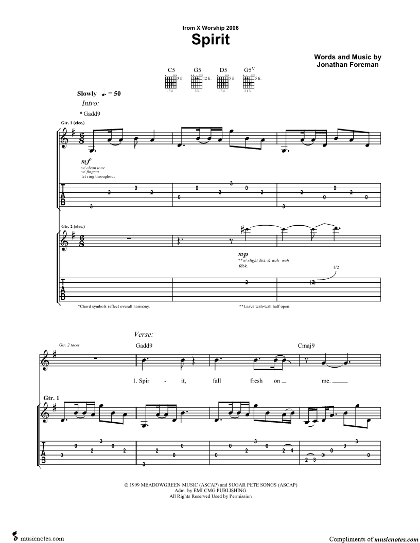 Guitar Tab Guitar/Vocal |