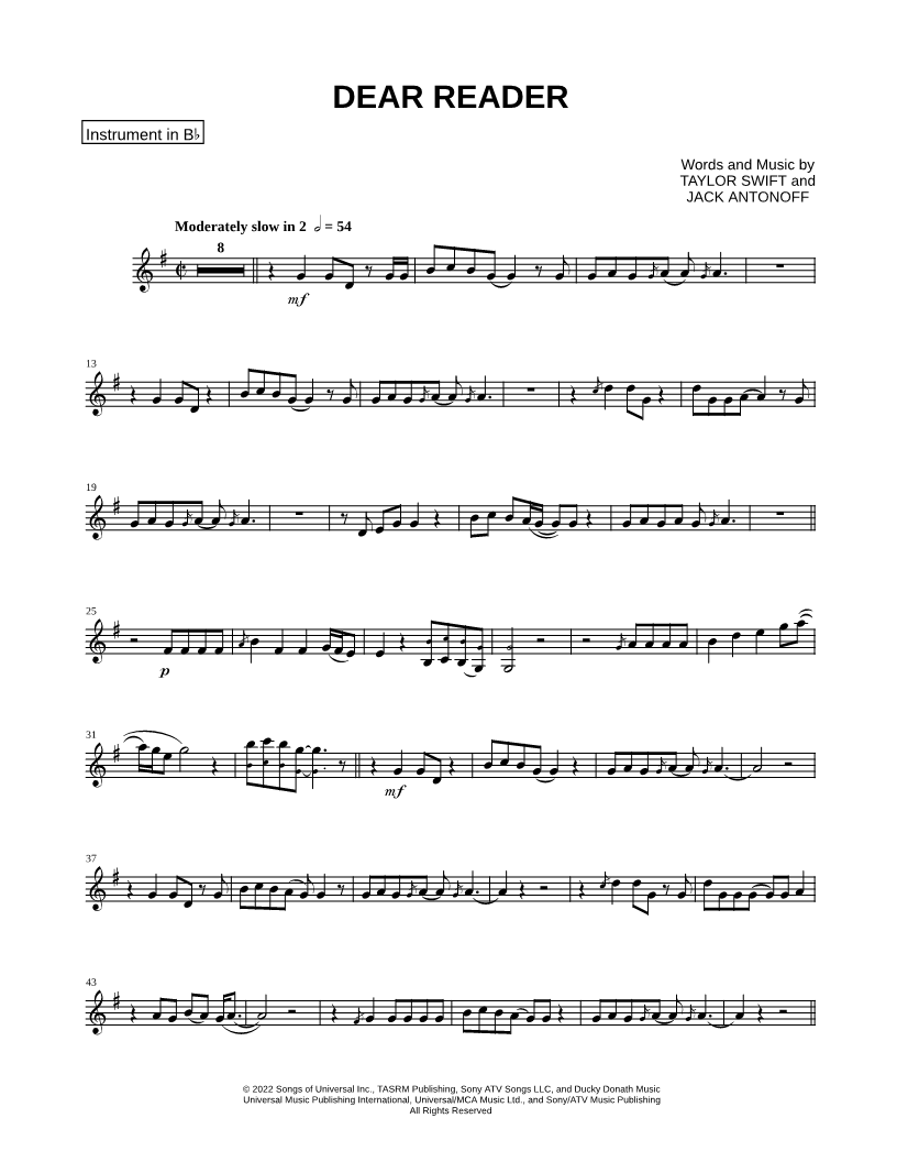 Bb Instrument, range: G3-C6 (Trumpet, Soprano Saxophone, Tenor Saxophone or Clarinet) | |
