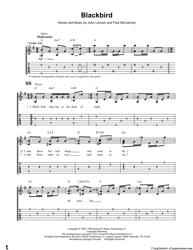 Black bird singing in the dead of night, take these broken wings and learn to fly. |