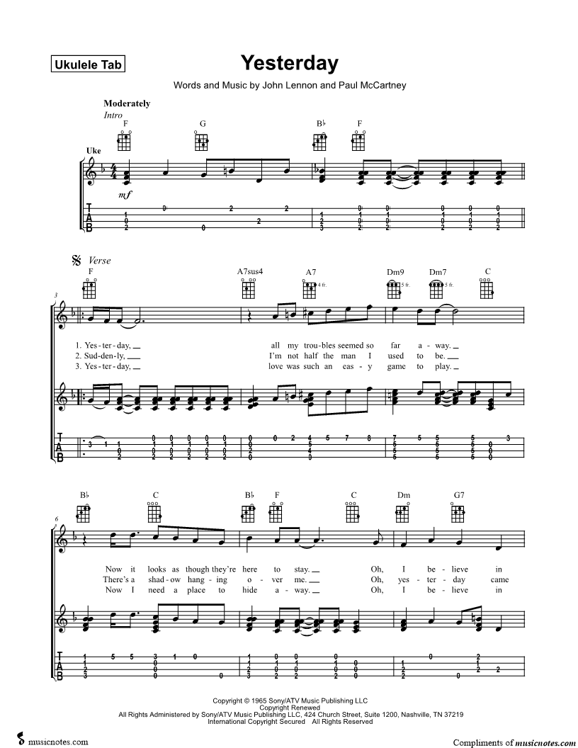Ukulele/Vocal/Chords Ukulele TAB |