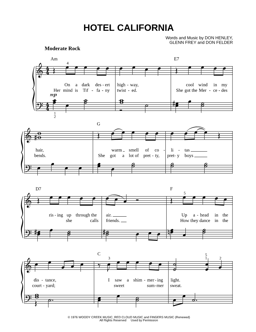 On a dark desert highway, cool wind in my hair, warm smell of colitas rising up through the air. |