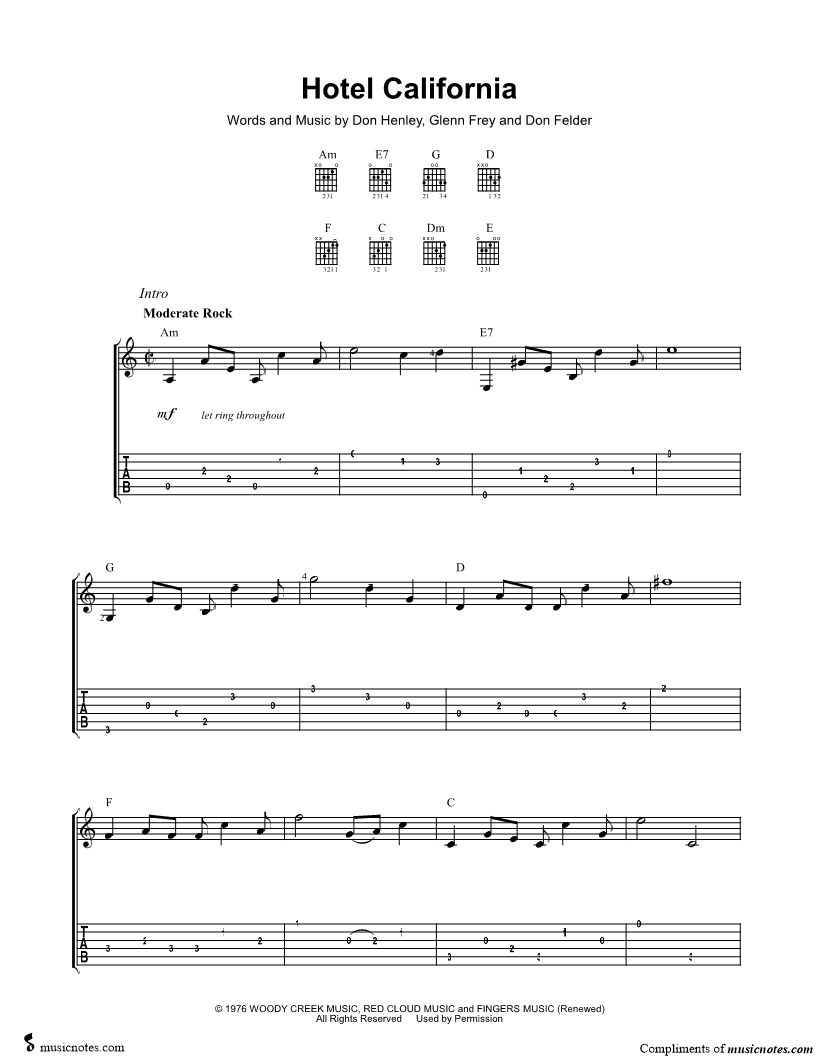 On a dark desert highway, cool wind in my hair, warm smell of colitas rising up through the air. |