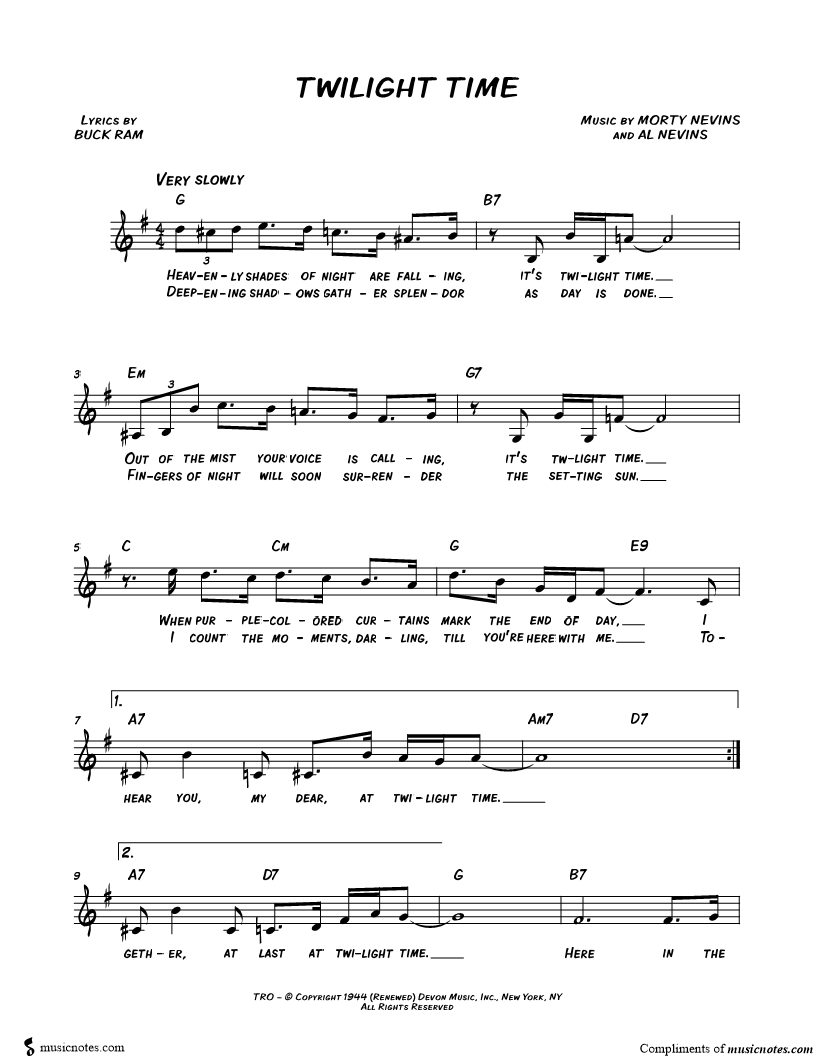 Heavenly shades of night are falling, it's twilight time. |