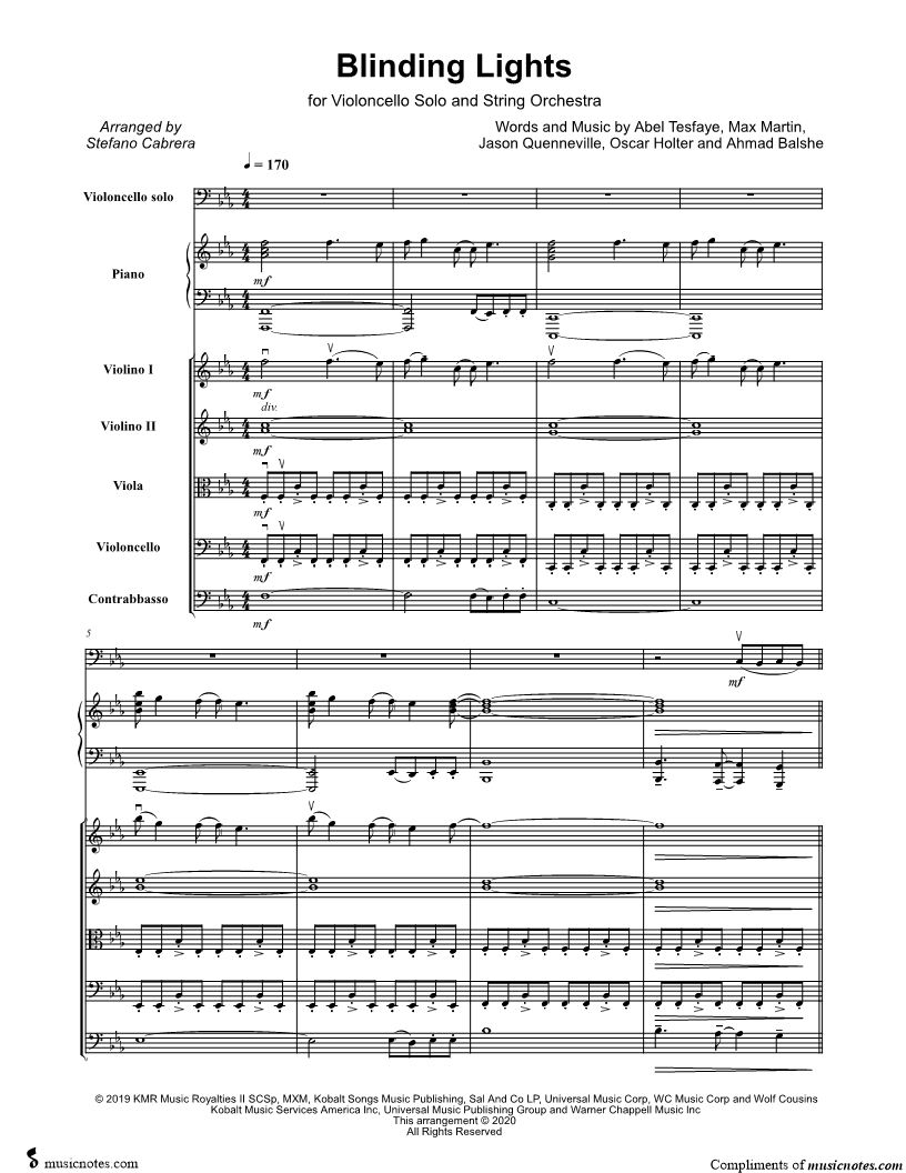 Piano Violin 1, range: Bb3-Bb6 Violin 2, range: G3-Bb5 Viola, range: C3-D4 Cello 1, range: C2-F3 Cello 2 Double Bass | |