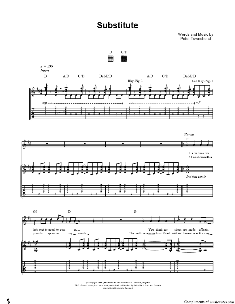 Guitar Tab Guitar/Vocal |