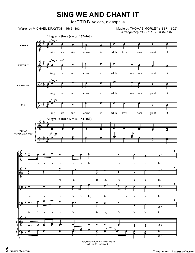 Sing we and chant it while love doth grant it. |